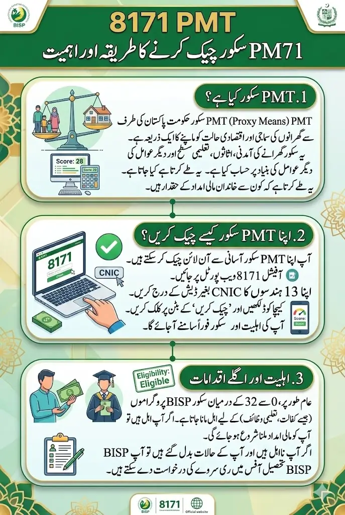 8171 PMT Score Check Online By CNIC is one of the most important tools for families in Pakistan seeking financial assistance from government programs like BISP Kafalat Payments, Taleemi Wazaif, and Rashan Riayat. In 2026, the government has made it easier than ever to verify your eligibility by allowing citizens to check their PMT score online using CNIC. This means you no longer need to visit government offices or wait in long queues.