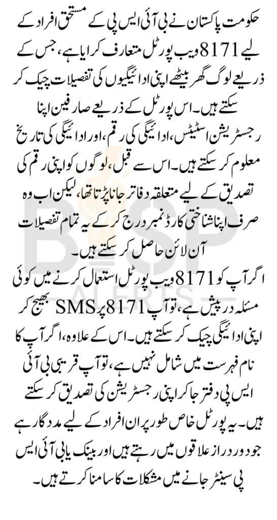 - Always use the official 8171 Web Portal (8171.bisp.gov.pk).