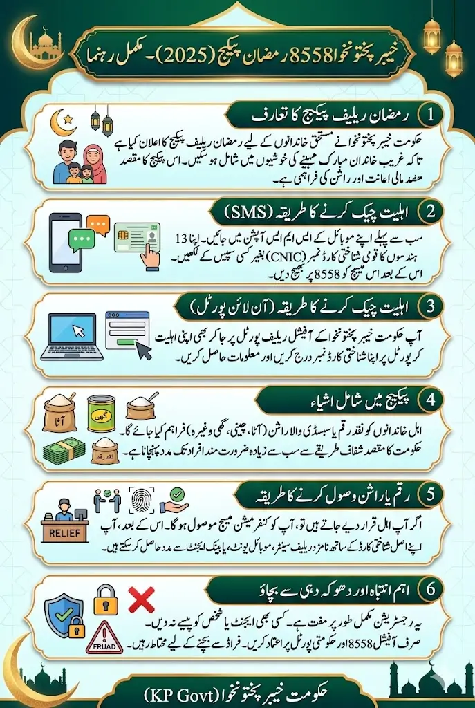 The 8558 Ramzan Package is an important welfare initiative that helps thousands of families in Khyber Pakhtunkhwa manage their food expenses during the holy month. With rising inflation and increasing grocery prices, such programs provide much-needed relief to households that struggle to meet their daily needs.