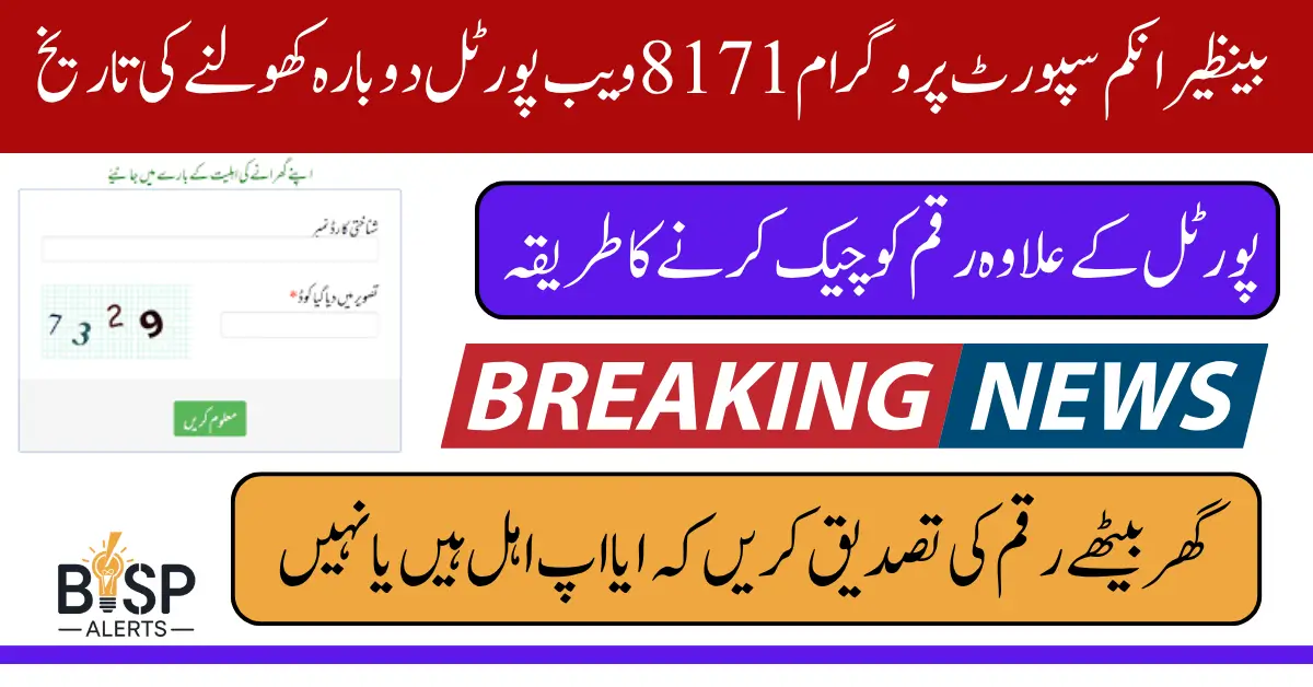 Benazir Income Support Programme Millions of low-income families across Pakistan rely on the Benazir Income Support Programme to meet basic needs through quarterly financial aid. One of the most commonly used tools for tracking payment status, eligibility, and registration is the 8171 web portal. However, as of May 13, 2025, this portal is not functioning due to technical upgrades and maintenance work.