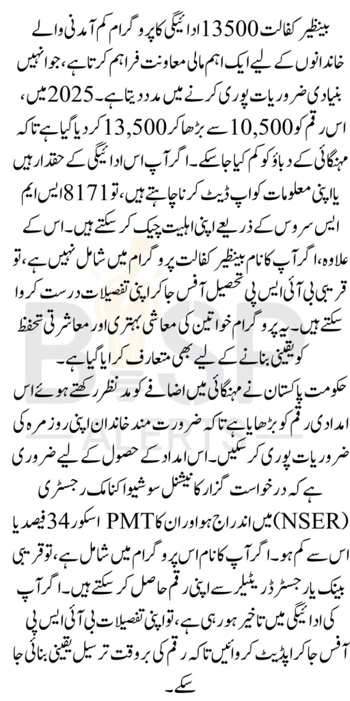 Who is Eligible for the Benazir Kafaalat 13500 Payment?