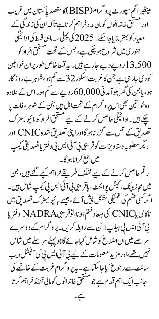 You Can Also Read: BISP Payments 2025 New Announcement 13500