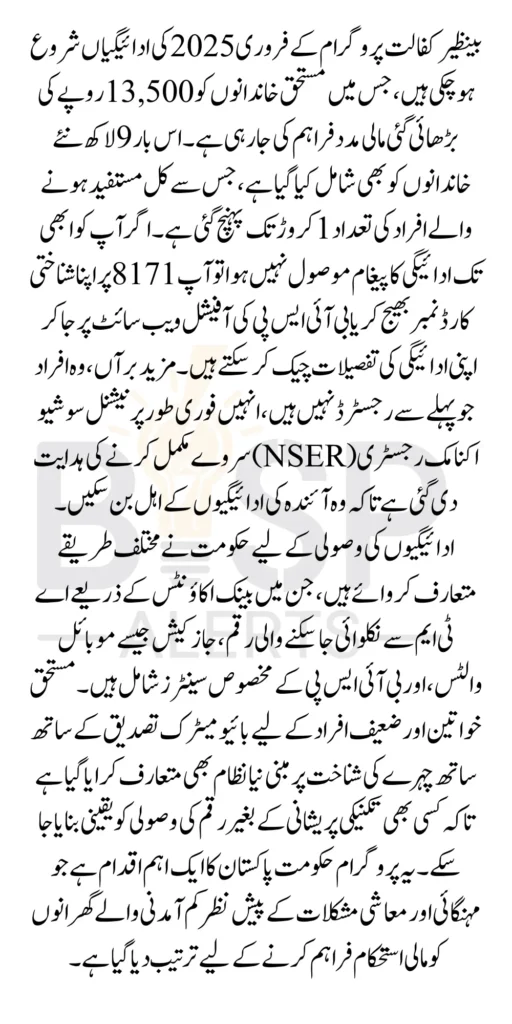 Benazir Kafalat Program Payments February 2026 This initiative is a crucial step in providing financial support to economically vulnerable families across the country. With an increased quarterly assistance amount of 13500, the government aims to help beneficiaries cope with inflation and economic hardships. Additionally, 9 lakh new families have been added to the program, increasing the total number of recipients to 10 million.