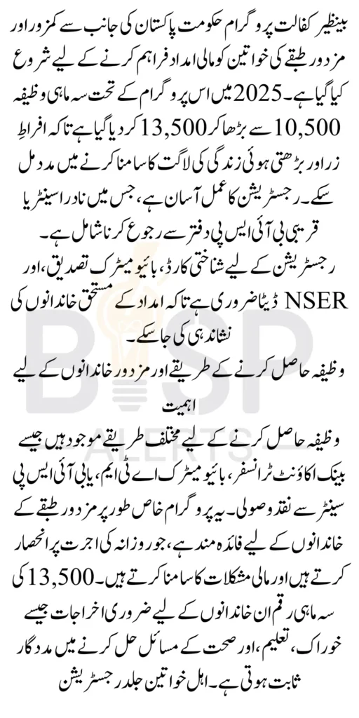 This program aims to provide financial aid to low-income families, particularly women, to support them in their daily lives. As of January 2025, the program has introduced a significant increase in the quarterly stipend, now offering 13,500 per installment. This change promises to bring greater financial relief to the families who need it the most. If you belong to a labor family or are struggling with financial difficulties, this article will guide you on how to register for the Benazir Kafalat Program and benefit from the new 13500 installment.