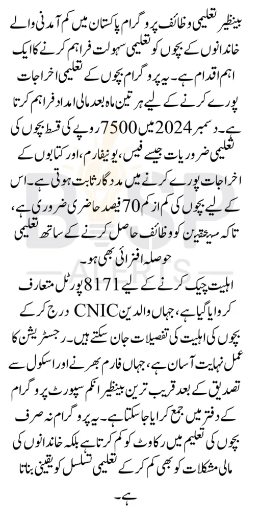Benazir Taleemi Wazaif New Payment exemplifies how targeted financial assistance can drive meaningful change in society. The New installment of 7500/- is more than just a payment; it represents hope and opportunity for countless families. By ensuring regular school attendance and reducing financial barriers, this program lays the foundation for a better future for Pakistan’s youth. Families are encouraged to stay informed, keep their documentation updated, and make the most of this invaluable initiative to secure their children’s academic and personal growth.