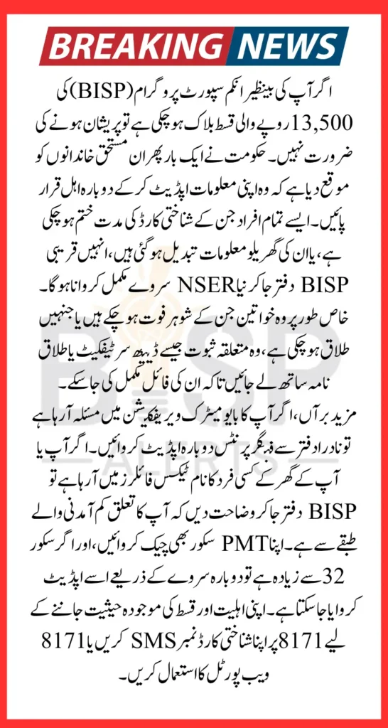 In 2025, many families under the BISP are facing issues with blocked or paused payments, especially the 13500 rupees installment. If your payment has stopped, you’re not alone. Thousands of households are affected due to reasons like expired CNICs, tax status complications, or missing household details. But the good news is, BISP has officially started the reactivation process. This guide will help you understand how to restore your BISP account and get your payments released without delay.