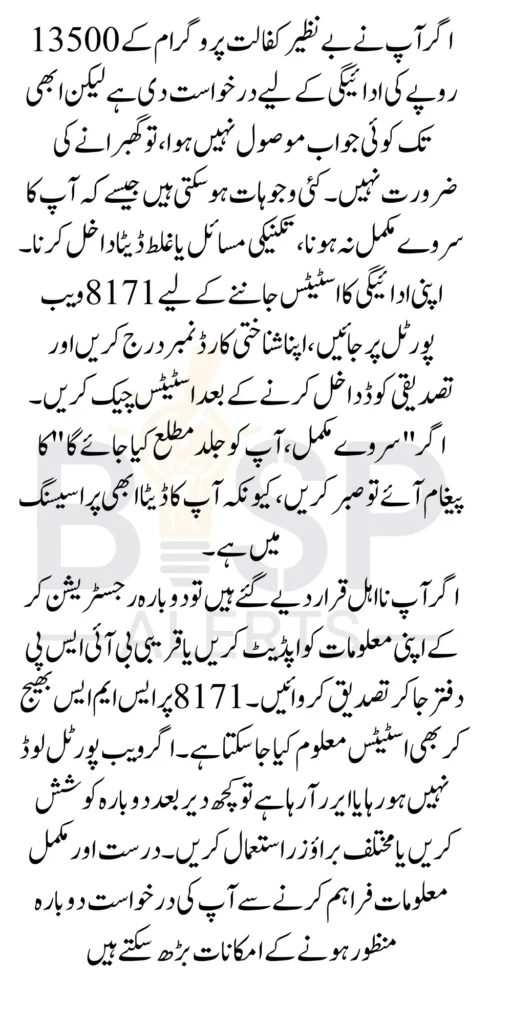BISP 13500 Payment No Response After Application via 8171 Here is What to Do