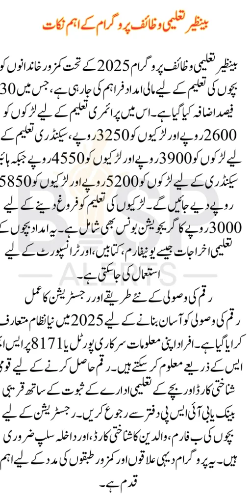 BISP 8171 New Taleemi Wazaif has long been a lifeline for underprivileged families in Pakistan, offering financial incentives to promote education among children from disadvantaged backgrounds. In 2025, the program has introduced significant updates, including a 30% payment extension and revised withdrawal methods, making it easier for beneficiaries to access their funds securely and efficiently. These changes aim to further the program’s mission of reducing poverty and increasing educational opportunities.