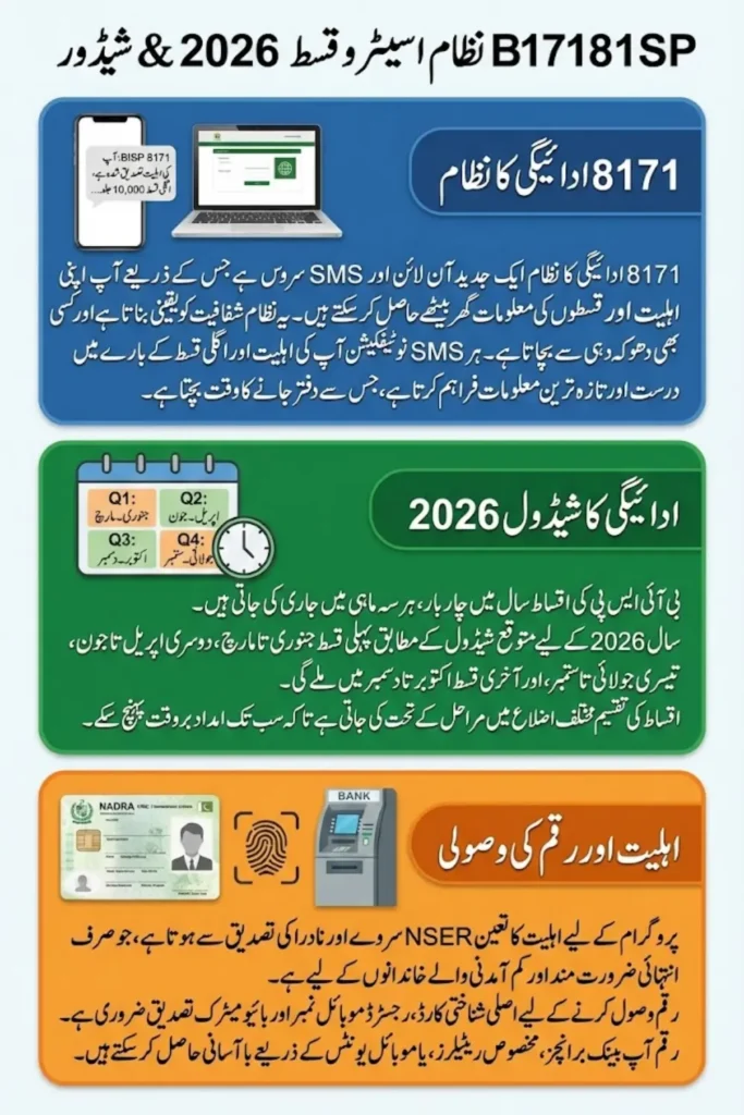 The BISP 8171 Payment Schedule 2026 is a crucial support system for Pakistan’s most vulnerable families. By understanding the quarterly payment timeline, eligibility criteria, and verification process, beneficiaries can avoid delays and ensure their cash assistance reaches them on time.