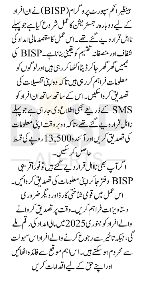 BISP is sending messages to previously ineligible individuals, guiding them to complete their verification process. These messages contain essential instructions and encourage recipients to act promptly.