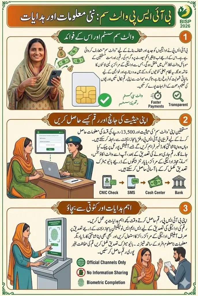 The purpose of this article is to clearly explain how the BISP wallet SIM system works, how you can check whether a SIM account has been issued in your name, and how the Rs. 13,500 payment can be withdrawn in 2026. If you carefully understand this information, you will be able to check your status and receive your payment without unnecessary difficulty.