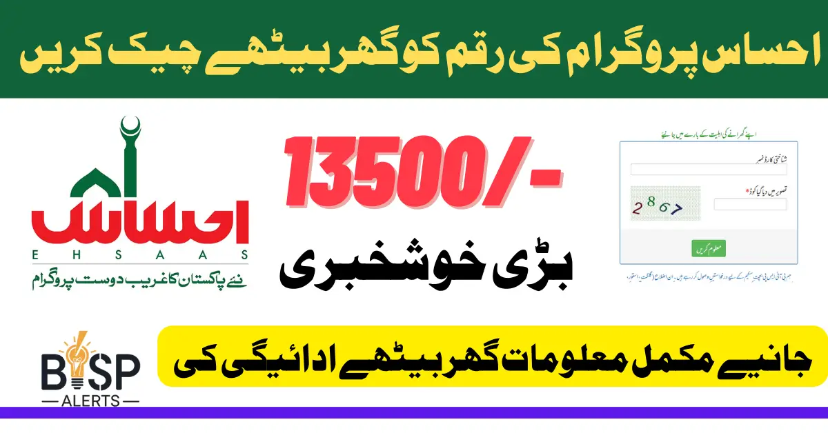 Ehsaas Program Government of Pakistan has once again provided financial support to low-income families through the Ehsaas Program, with a new installment of 13500 under the Benazir Kafalat Program. This payment covers the January to March 2025 period, helping millions of deserving people manage their basic needs. If you are already registered in this program, checking your payment status has become easier than ever. You can now verify your eligibility and payment details from the comfort of your home using the 8171 Web Portal or through a simple SMS. how to check your 13,500 rupees payment at home without visiting any office. eligibility criteria, required documents, and how you can update your information if you’re facing any problems.