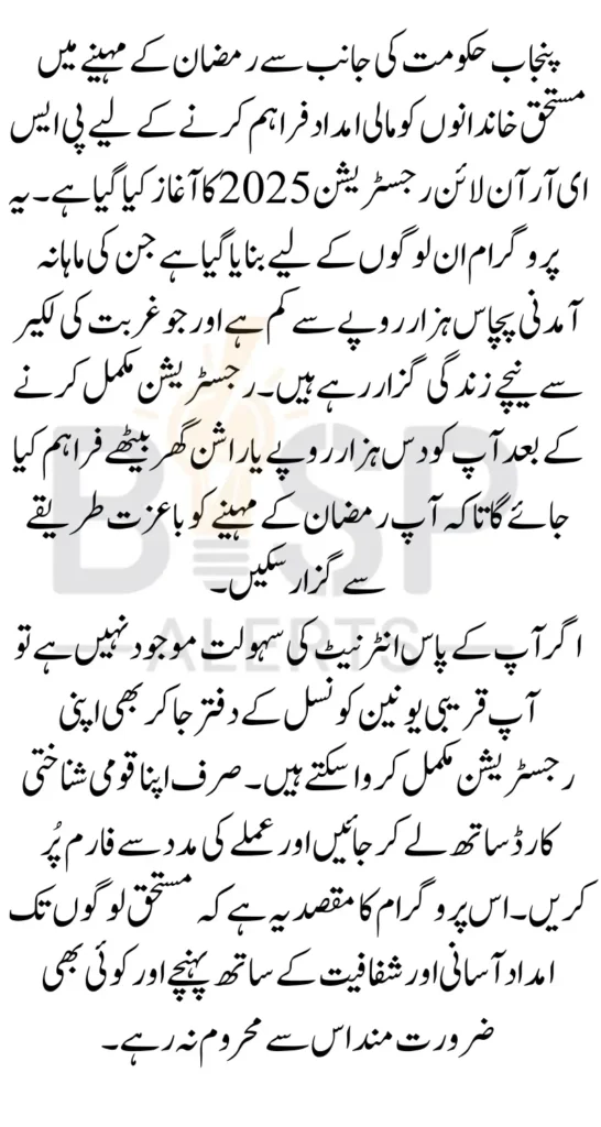 The PSER Online Registration Ramzan Relief Program 2026 is a thoughtful step by the Punjab Government to ensure that no deserving family goes hungry during Ramzan. Whether you choose to register online or at your local Union Council office, the process is simple and designed to help you get the support you need.