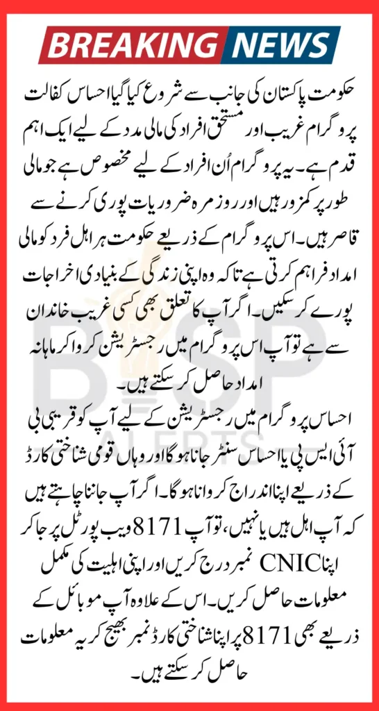Keeping this in mind, the Government of Pakistan has started Ehsaas Program 8171. You can also register for the Ehsaas program. You must have CNIC for registration. You are registered in the Ehsaas program only after getting CNIC. If you are registered in this program. So you are provided with financial assistance under this program.