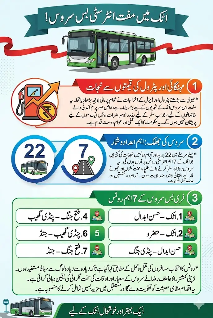 Free Bus Service on 7 Routes In Attock launch of a free bus service in Attock has brought a sense of relief among citizens who have been struggling with rising travel costs. In recent months, the increase in petrol and diesel prices has made daily commuting very difficult, especially for people with limited income. This initiative is not just about transportation; it is about easing the financial burden that many families face every single day.