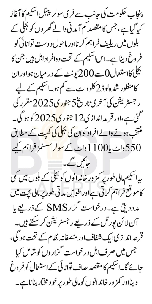The Punjab Free Solar Panel Scheme is a game-changer for many low-income households, offering them a chance to reduce their electricity bills while contributing to a greener future. With the Qurandazi date approaching in 2025, it’s crucial to register before the deadline of January 5, 2025, to participate in the selection process.