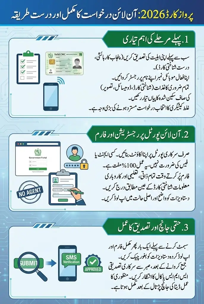 The Parwaz Card application system is completely online. The Punjab government has clearly stated that applications are accepted only through its official portal. Any other method is invalid.