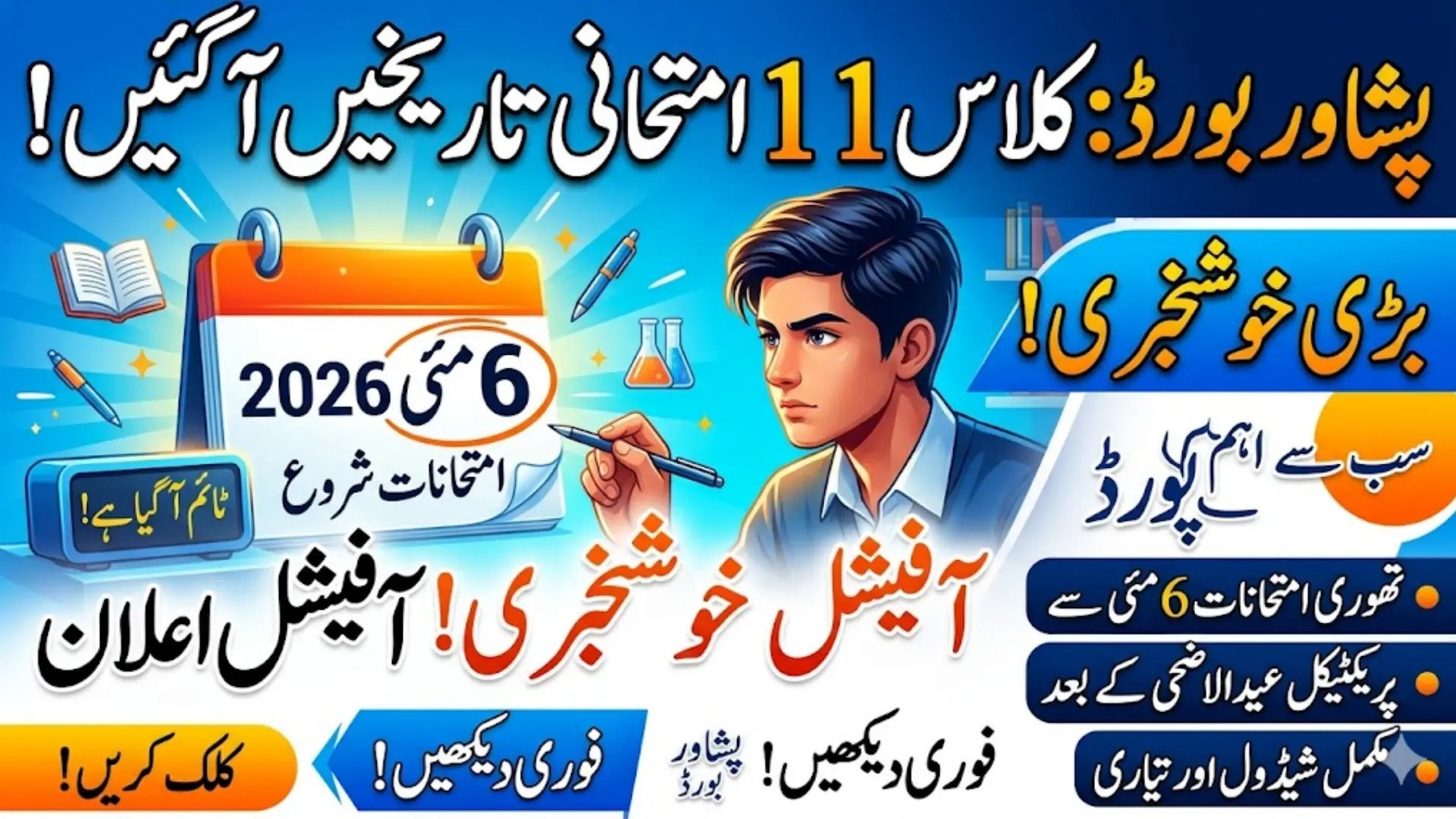 Peshawar Class 11 Board Announces Exam Dates The Board of Intermediate and Secondary Education Peshawar has officially announced the schedule for Class 11 annual examinations 2026. According to the latest update, exams will begin from May 6, 2026, giving students a clear timeline to prepare themselves.