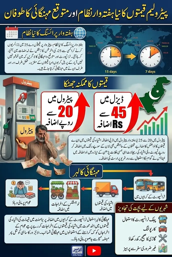 Petrol Price Increase in Pakistan Pakistan may soon witness another significant increase in fuel prices as the federal government considers introducing a new weekly petroleum pricing system. Currently, petrol and diesel prices are revised every 15 days, but authorities are discussing a new plan to review prices every week due to the rapid changes in international oil markets.