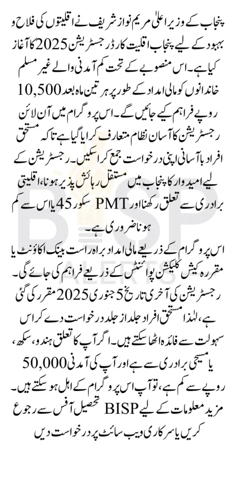 If you belong to a non-Muslim community in Punjab, don’t miss this opportunity. Register online today, complete the verification process, and claim your quarterly stipend of 10,500.