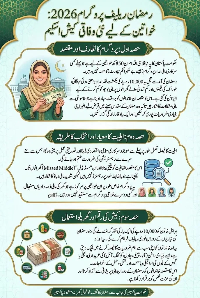 Ramadan Relief Expansion 2026 As Ramadan approaches, the federal government has introduced a significant relief measure aimed at women who have never received formal financial assistance. The program plans to include 5 million women across Pakistan and provide each eligible beneficiary with Rs. 10,000 in direct cash support. This decision reflects growing concern about inflation, rising food prices, and the increasing burden on low-income households during the holy month.